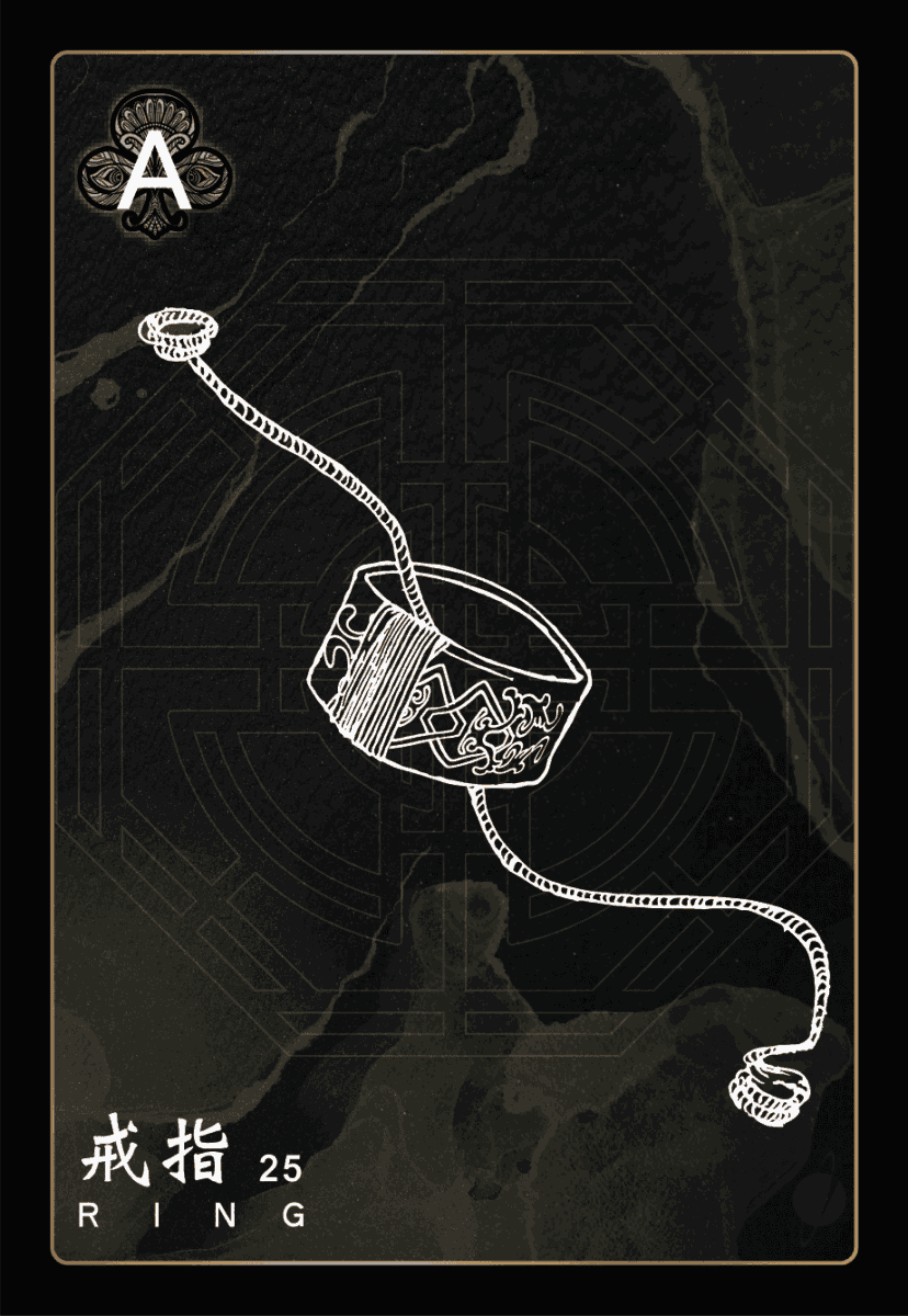戒指牌有著承諾、循環、誓言、守候的涵義,但是也重複強調是一個循環,例如:前面是張負面牌後面接戒指牌,個案的問題是回原公司的環境狀態會如何,我回答是有機會回到原本的角色與位子,但是戒指也代表上次在這間公司沒過的課題,會再次循環讓你再度學會,哪裡沒做好再做一次,所以建議才會是答應、重聚、注意重複事件、遞出邀請。