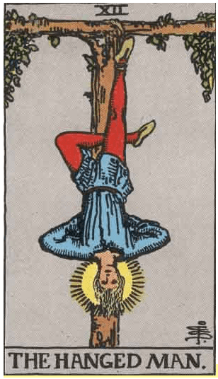 正位意味著做自己,即使別人覺得你一切顛而倒之,別人可能會說被關在家理你怎麼可以這麼平靜,疫情這麼嚴重怎麼可以在家自得其樂,不管別人會覺得反正自己好好過就好,這也可以意味著艱難試煉之後的平靜,因為已經知道每次都很努力,努力之後沒有意義所以已經學會了,如果走到倒吊人的話其實已經知道冥冥之中的安排與業力,已經有一定的臣服能力的,潛意識已經走到後期階段,能相信世界上有如此的規則、神性存在了,那在逆位時會是沒能力掙脫社會價值,試圖否認自身某個基本的部分,無法接受真相,就以剛剛疫情為例會一直覺得煩躁,為何不能出門,抱怨外境,想做的通常都是不能做的,都會認為想做的事情沒辦法做,不想做的社會都在逼你做,所以逆位時會試圖用自己的力量逃脫,會比較辛苦一點。
